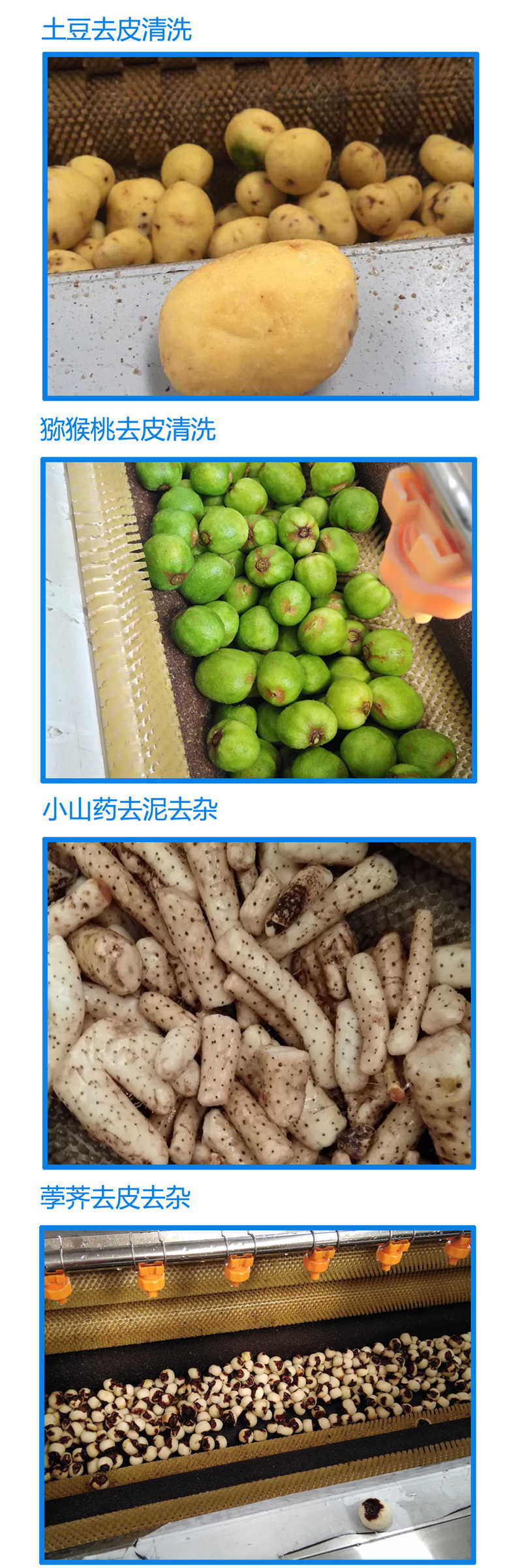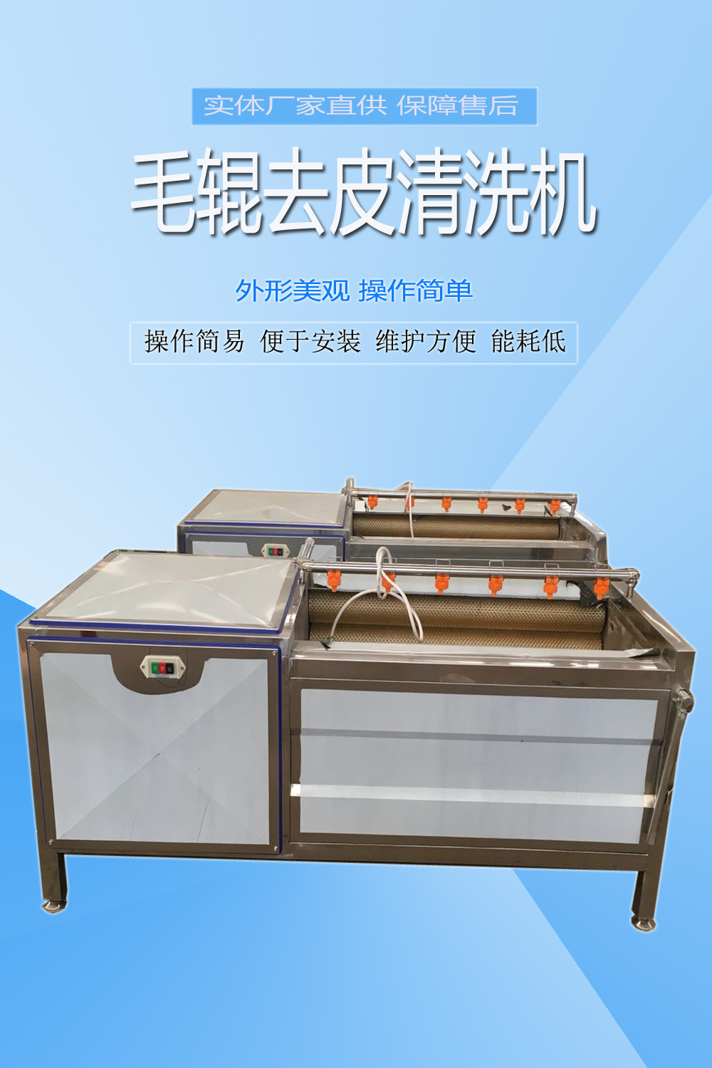 毛輥清洗脫皮機主要由電機、變速器、毛棍組等構成,是我廠吸取了國內(nèi)外對根薯類加工機械的特點設計制造的,采用毛刷摩擦原理,廣泛適用于圓形,橢圓形果蔬比如生姜、胡蘿卜、山芋、土豆、紅薯、等根薯類蔬菜的清洗、脫皮。